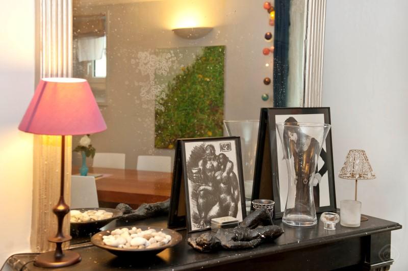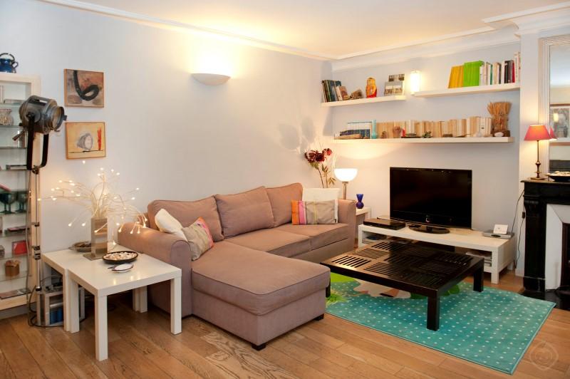 The living area is very comfortable and welcoming and you will feel instantly at home thanks to the lovely decorations. It features a comfortable sofa, which converts into a double bed, two armchairs, a hifi system, a flat screen TV with cable and DVD and plenty of books so you can take a break between two shopping sprees. There is also a large wooden table, which can easily seat six people. The separate contemporary kitchen is fully equipped for all your needs, whether you want to try out some elaborate french cuisine recipe, or just heat up some take away food. A dishwasher, a washing machine, a dryer and an iron and board are also available. The separate bedroom has a double bed, a wooden floor and a wardrobe. The bathroom has a regular bath with a shower, a washbasin and toilet. For your convenience there is also a high speed Internet connection, airconditioning and an elevator, to take you up to this typical Parisian apartment on the fourth floor. Just a short walk away you will find plenty of shops, cafés and restaurants, as well as the metro lines 4 and 10 from which you can travel all over Paris. This cosy apartment is the perfect place for you and your family or friends to have a wonderful stay right in the center of Paris.